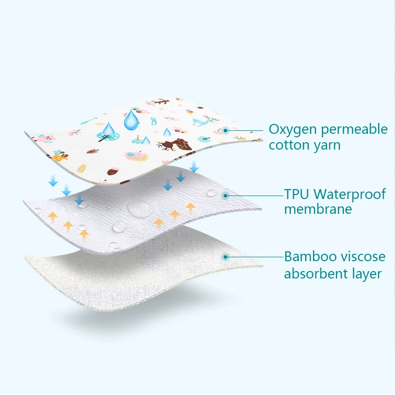Material: cotton on side, waterproof TPU in the middle, bamboo viscose the other side