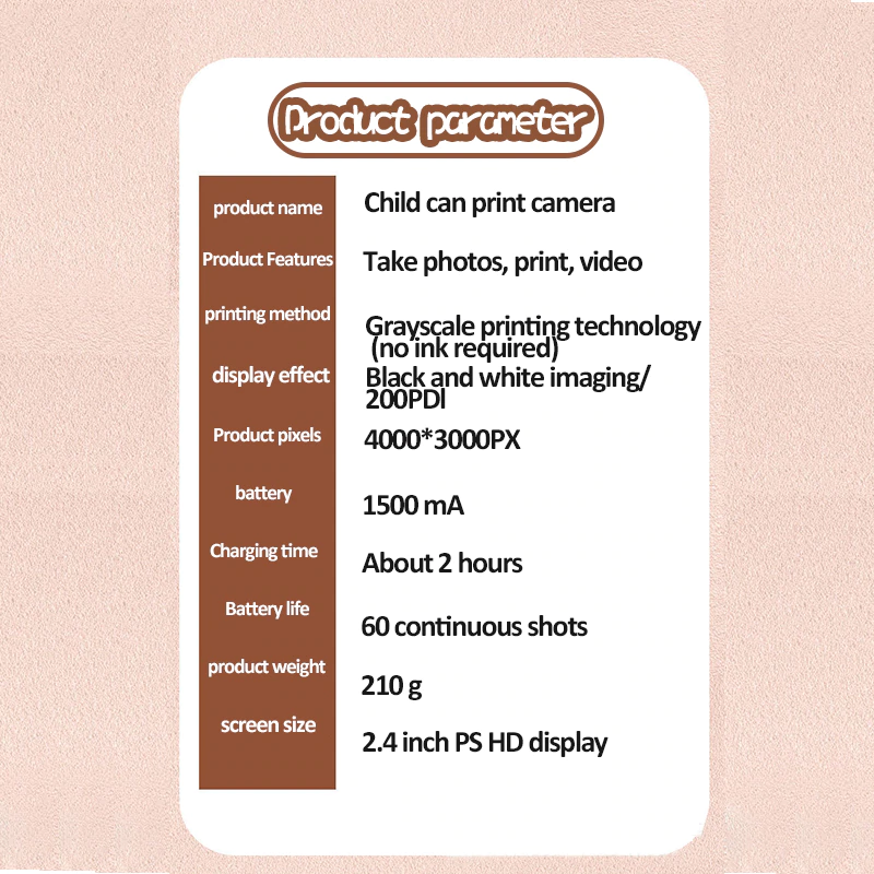 Kids Instant Print 1080P HD Camera