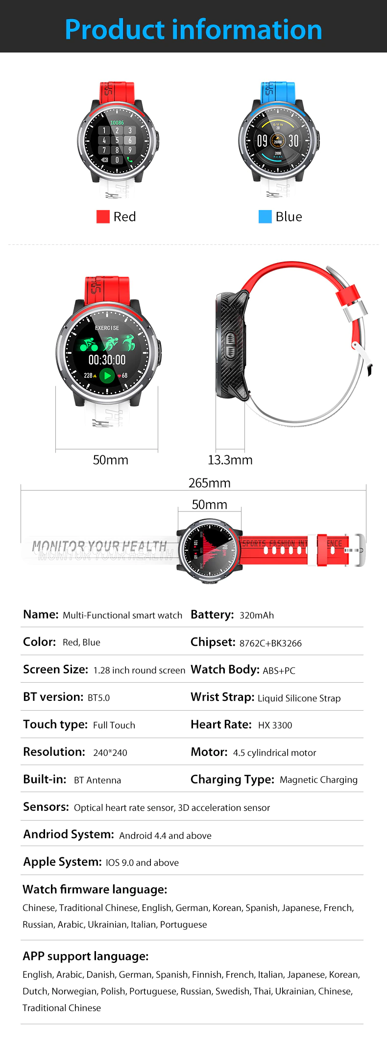 Health Monitor Watch with Extra Strap