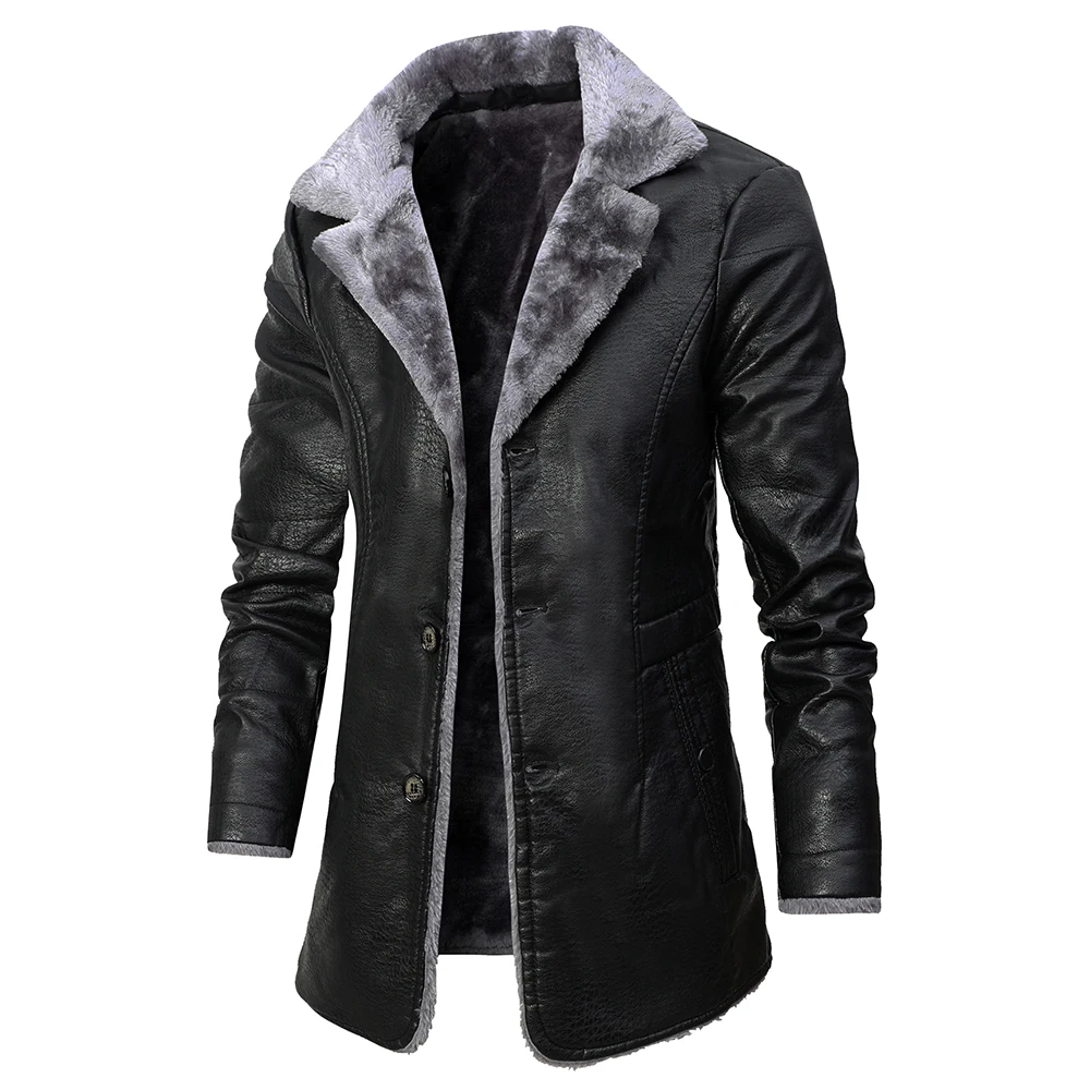 Men Long Thick Leather Jacket