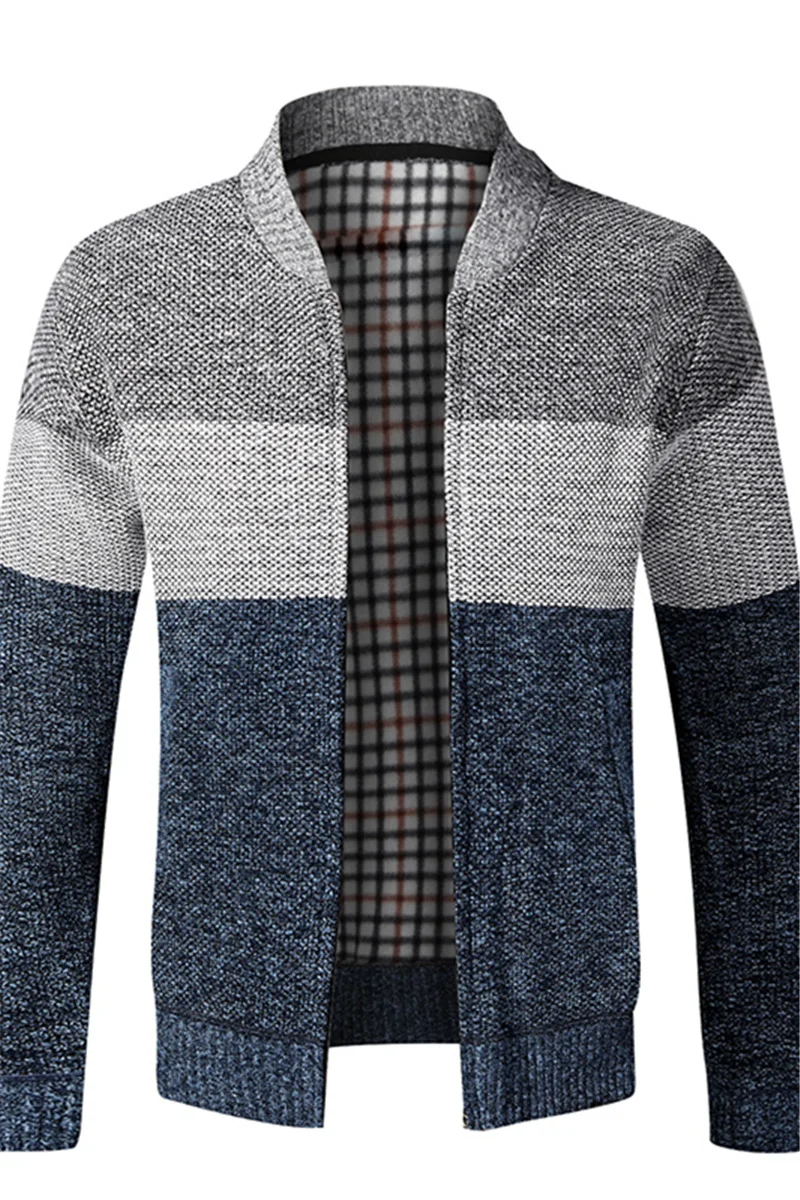 Mens Stand Collar Knitted Front Zip Sweater